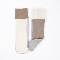 Our cashmere Bed Socks are wonderfully odd in a patchwork design, so you do not have to suffer through matching bed socks. Crafted from 100% recycled cashmere and a one-size fit, they make a cosy companion through the night. These handmade bed socks will not withstand walking around in, and definitely shouldn't be worn in boots or other footwear, as tempting as that might be!