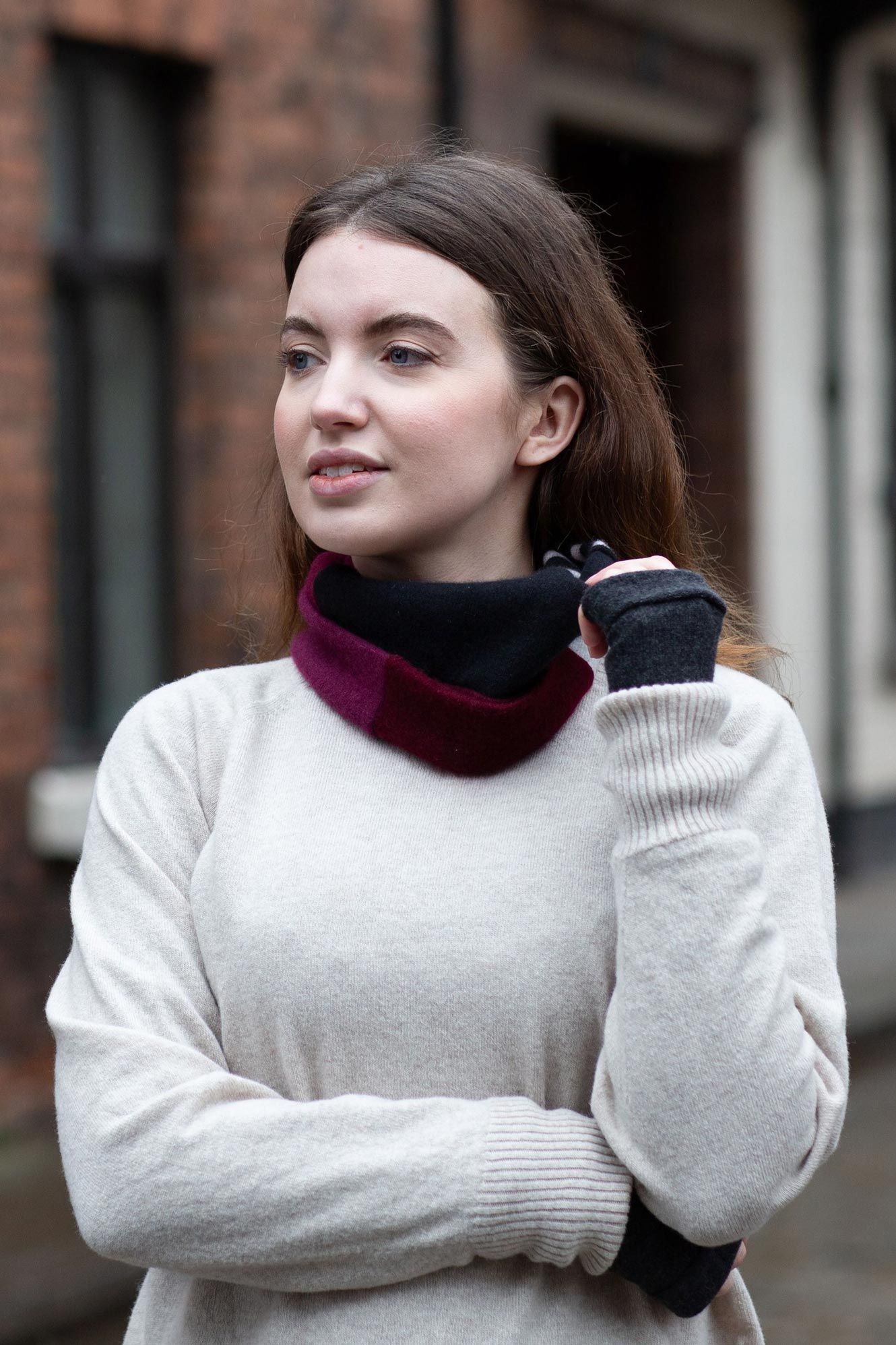 Our neck warmers are crafted from recycled cashmere for luxurious comfort and versatility. Not only can it be worn around the neck indoors and out, it also doubles as a headband when folded. Unisex and suitable for ages 3 and above, this neck warmer is a great gift and a safe and secure alternative to a scarf for children. Every neck warmer is hand-made from recycled jumpers, making each one truly one of a kind.