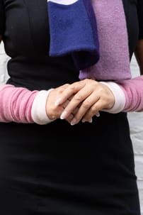 Our cashmere wrist warmers can be worn in multiple ways, they can provide a single extended layer or a snug double-layered solution. Each end offers assorted colours, allowing for more combination possibilities with your outfit. Customers tell us it helps soothe symptoms of Raynaud's and Arthritic conditions, providing warmth around the wrists and comforting heat for the hands. The recycled nature of what we do means that every pair is unique. Colours and styles will vary.