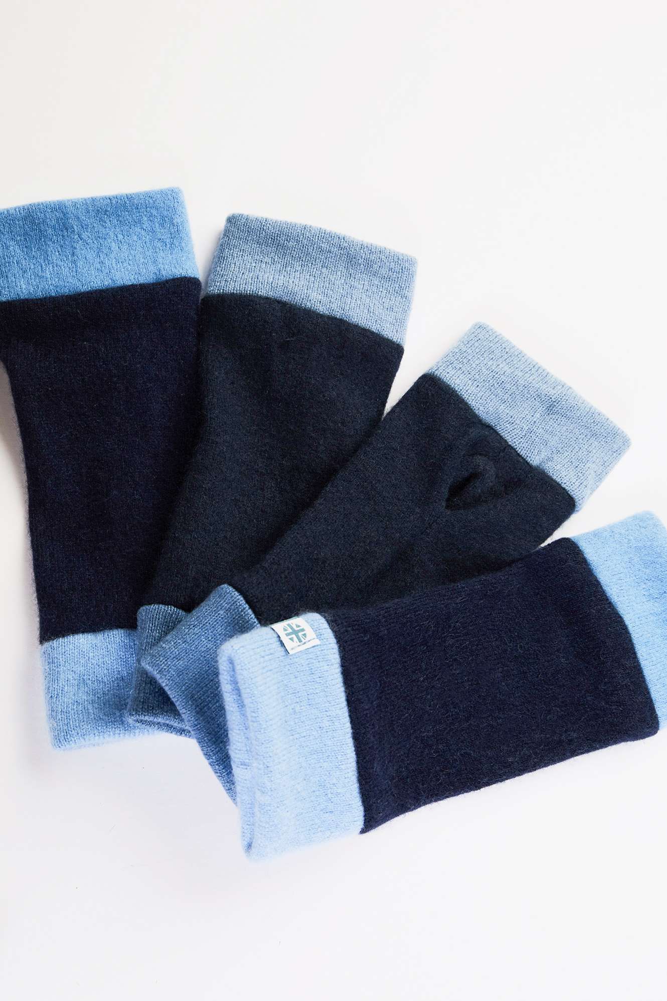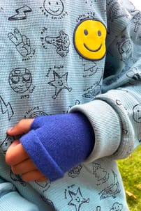 These recycled cashmere fingerless gloves are perfect for children! They have been made smaller in size, perfect for keeping children's hands warm in the colder months. The recycled nature of what we do means that every pair is unique. Colours and styles will vary.
