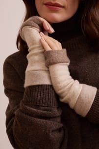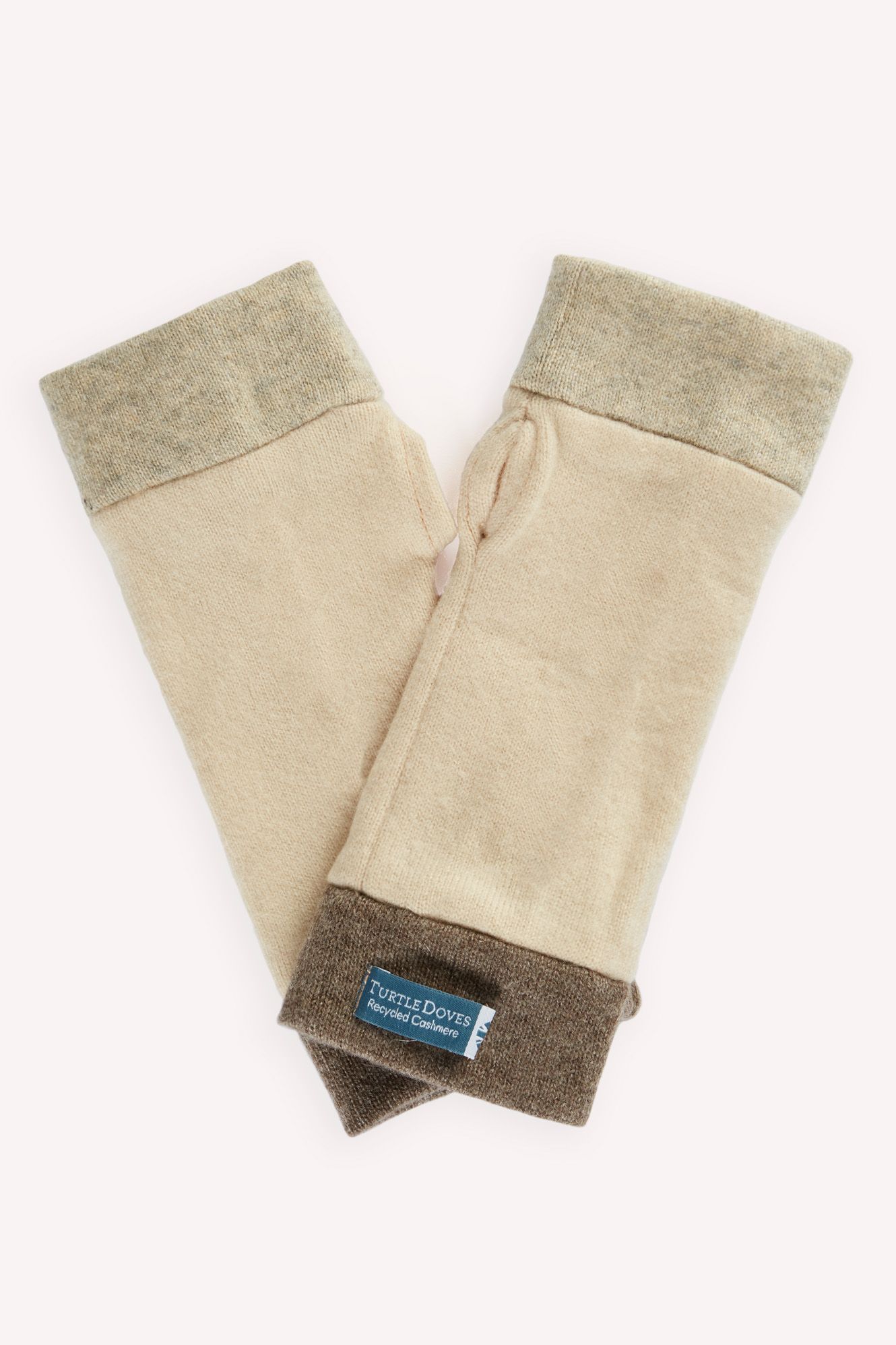 Turtle Doves Colour Block Fingerless Gloves offer a snug, heat-retaining fit for exceptional warmth and comfort. Crafted from luxurious 100% recycled cashmere, they help promote hand circulation and make an ideal year-round accessory. The colour block design adds a vibrant twist, and because of the recycled nature of our process, every pair is unique. Colours and styles will vary.