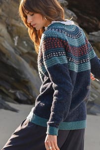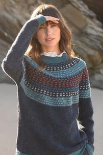 Our designers have used a pretty float-stitch detail to give the curved yoke a little extra charm, while the crew neckline, hem and cuffs are all designed with a purl knit for subtle contrast.