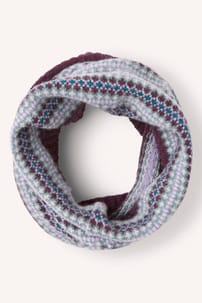 Designed with a two-colour ripple pattern fair isle, this Lambswool snood offers luxurious warmth. It's crafted in Britain and can be styled with the matching Lambswool Ripple Fair Isle Fingerless Gloves and Beanie.