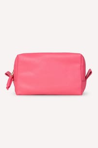 This elegant leather make-up bag features a boxy design with a two-way zip for easy access and an inside elasticated pocket for secure organisation.