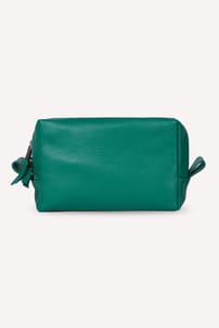 This elegant leather make-up bag features a boxy design with a two-way zip for easy access and an inside elasticated pocket for secure organisation.