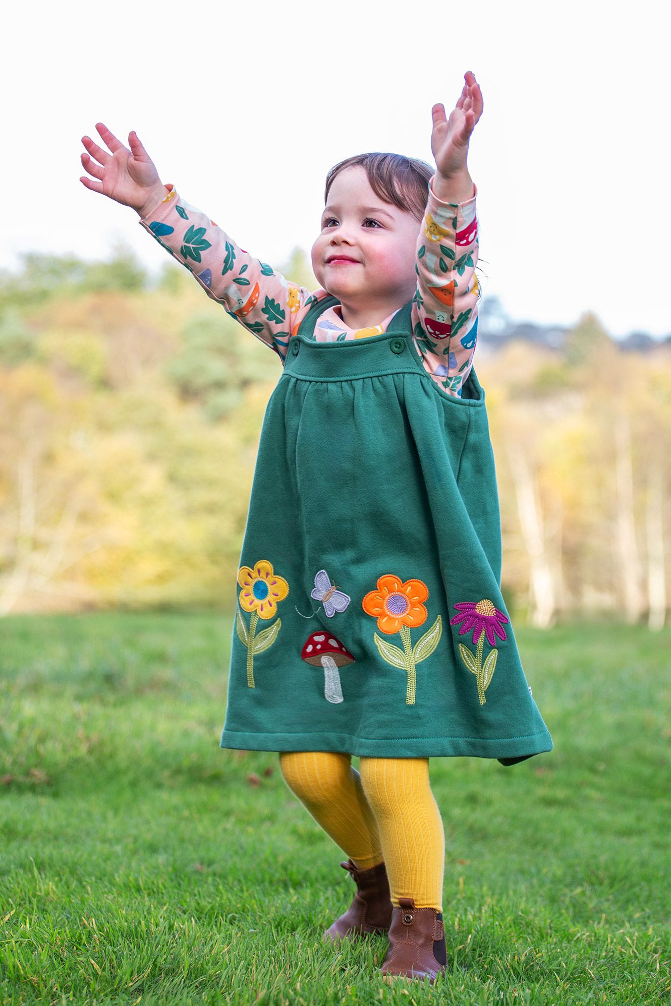This adorable Pippa Pinafore Outfit offers all-day comfort in snuggly-soft organic cotton. This 2-piece Pinafore dress set comes with a coordinating baby body in sizes up to 24 months and a top in the larger sizes. The pinafore-style dress features a fun appliqué on the front, and it has adjustable button-fastening shoulder straps, allowing it to grow with little ones for adventure after adventure.