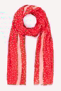 Bring a playful twist to new season layering - a cosy woollen scarf in a ditsy polka dot print.
