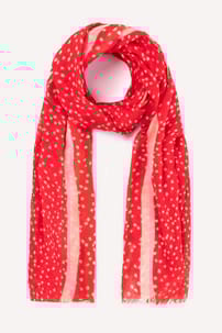 Bring a playful twist to new season layering - a cosy woollen scarf in a ditsy polka dot print. Perfect for layering over coats or tucking under blazers. Drape, wrap, or neatly knot for an effortlessly chic look.
