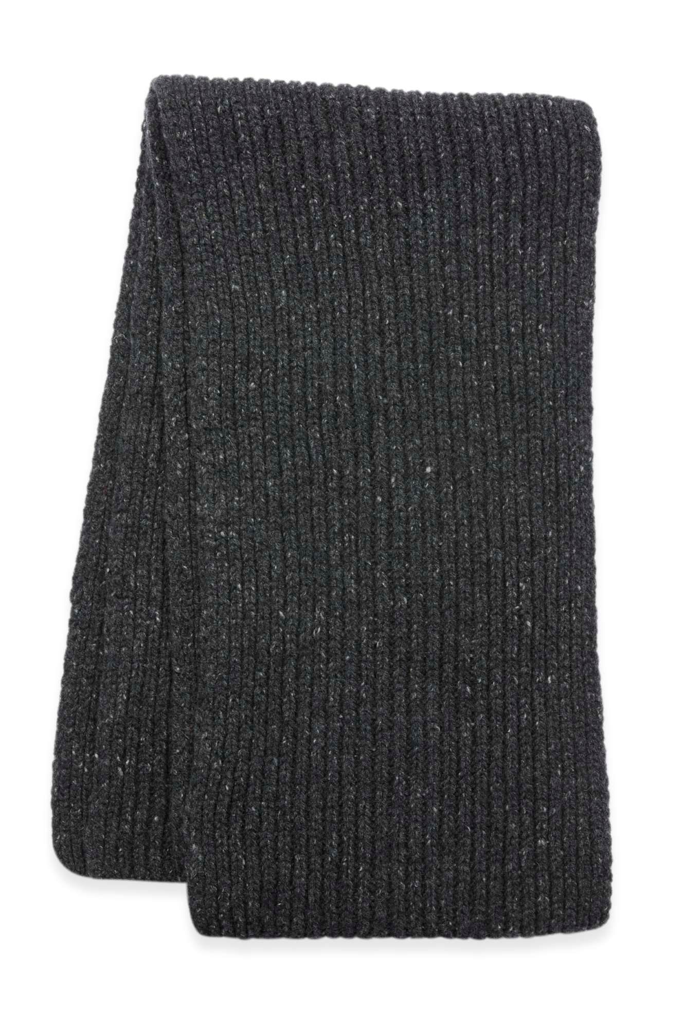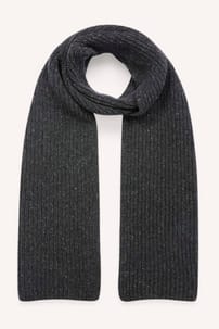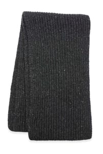 Made in Britain from recycled merino and cashmere, this rectangular scarf features a ribbed stitch pattern and flecked yarn for subtle texture. Soft and warm, it provides a sustainable option for everyday layering.