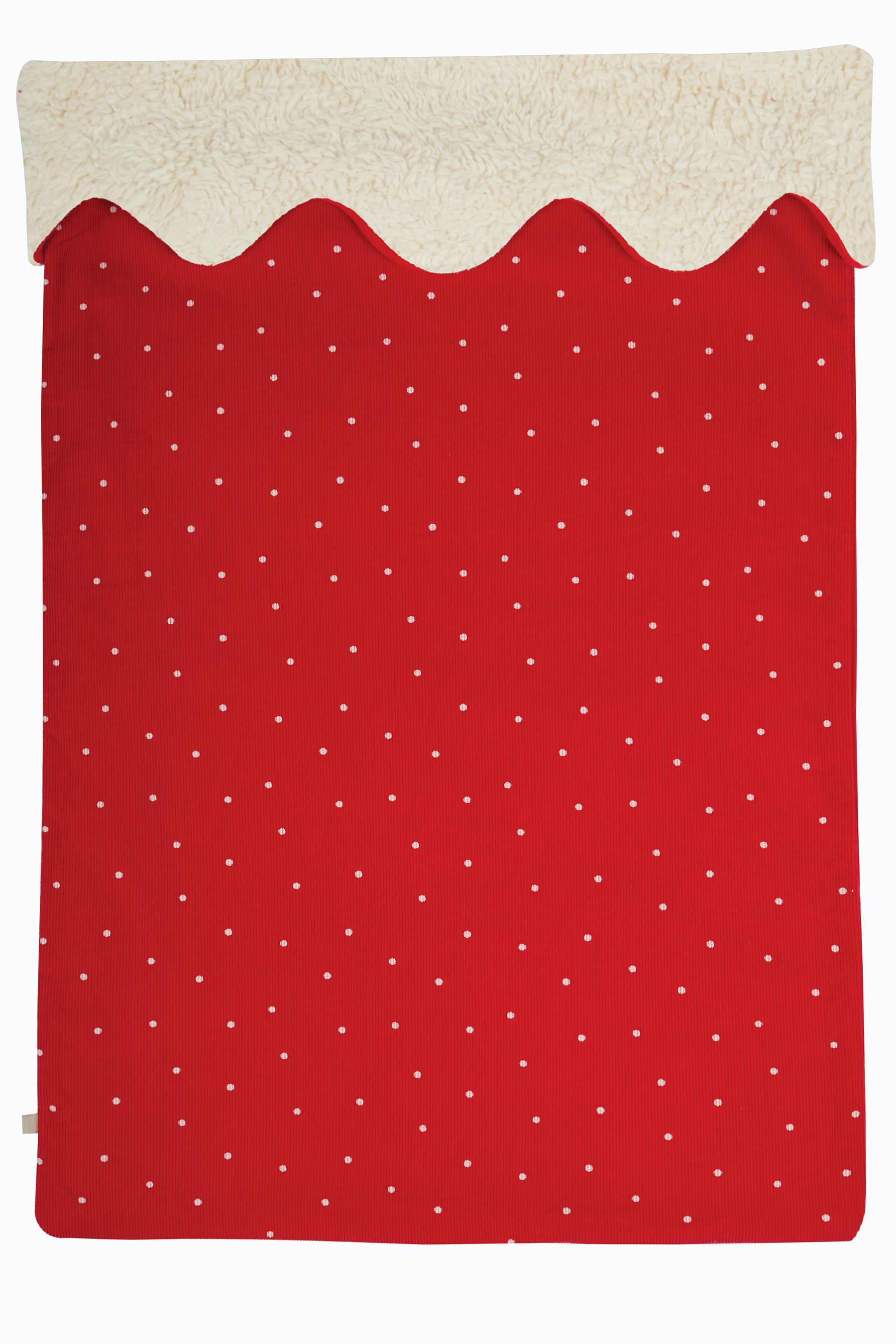 The Frugi Santa Sack measures 45 x 60cm with a 3cm (6 total) hanging loop. The main fabric is cord with a snuggle fleece band at the top edge. It's fully lined with interlock 100% organic cotton jersey.