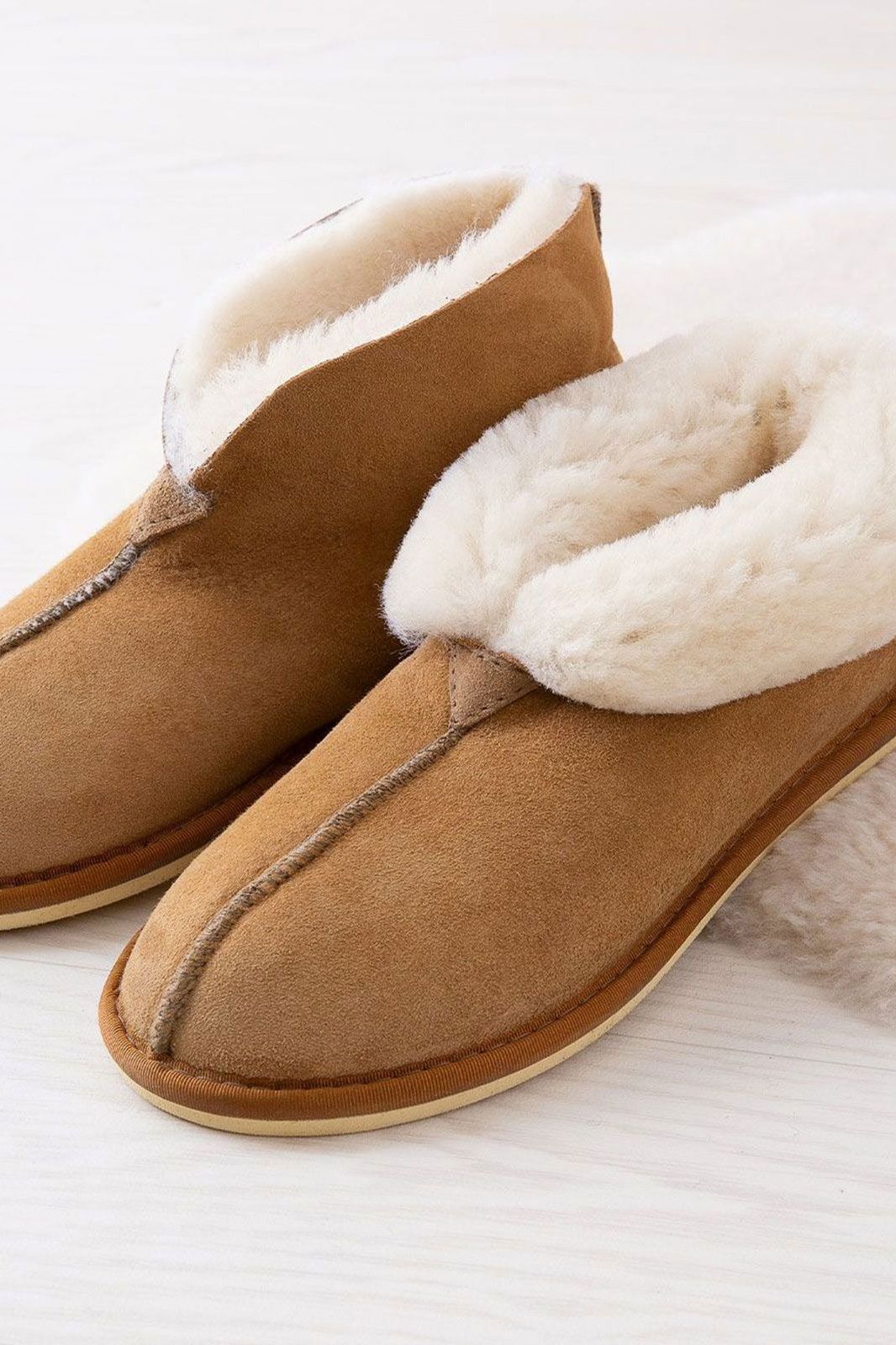 Elevate your lounging experience with these cosy and eco-conscious sheepskin bootee slippers.