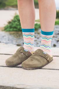 Brighten your day with our Women’s Wavy Stripe Socks, blending playful patterns with everyday comfort. With their lively waves and vibrant flair, these socks add a joyful touch to any outfit. A go-to favourite, designed to keep your feet warm and your look full of personality.