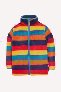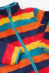 Keep the chill at bay with Frugi's Zipped Ted Fleece Jacket! Made from post-consumer recycled plastic, this cosy jacket features a snug high neckline, an easy full-length zip, and a chin guard for extra comfort. It’s the perfect mid-layer for your little explorer's outdoor adventures.