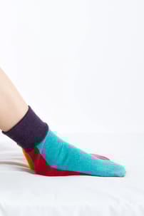 Our cashmere Bed Socks are wonderfully odd in a patchwork design, so you do not have to suffer through matching bed socks. Crafted from 100% recycled cashmere and a one-size fit, they make a cosy companion through the night. These handmade bed socks will not withstand walking around in, and definitely shouldn't be worn in boots or other footwear, as tempting as that might be! The recycled nature of what we do means that every pair is unique, so you will receive a shade within the colour spectrum shown in the photographs.